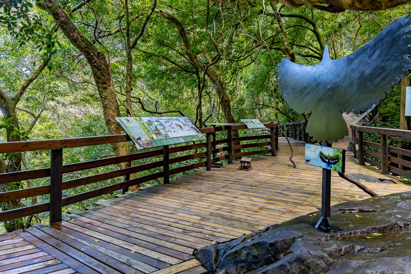 The viewing lift takes visitors 51 metres down the face of the Graskop Gorge, into the indigenous forest below, where wooden walkways and suspension bridges make up a 600-metre circular trail. In the forest, interactive exhibits and interpretation boards enable visitors to explore the diverse life that thrives under the dense canopy of trees, and they can enjoy the waterfall and meandering stream, too.